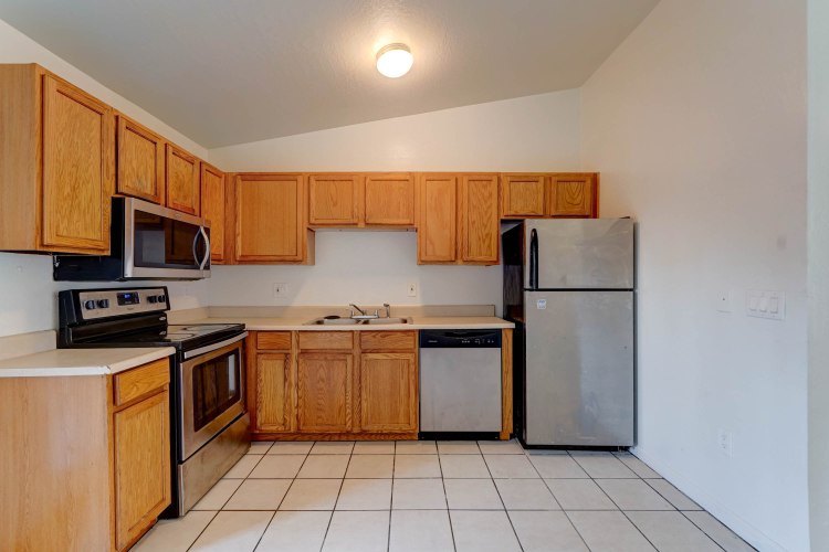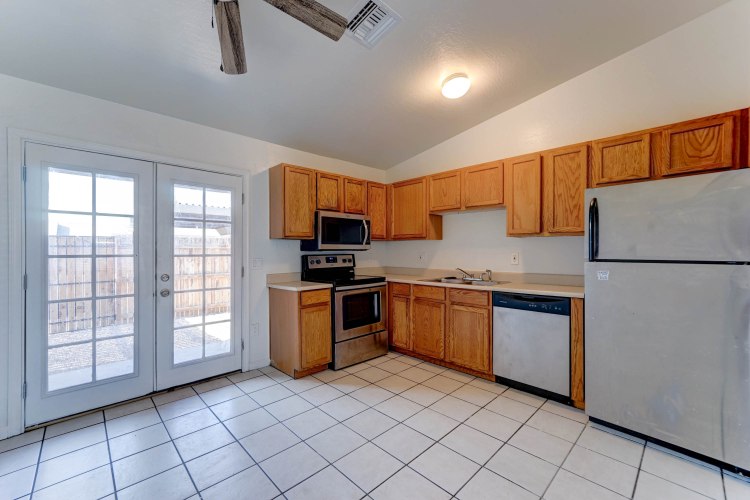 ALL APPLIANCES INCLUDED! One of the few 3-bedroom condos available in the area. Recently updated with all stainless steel kitchen appliances, new interior paint, wood-look flooring in the living spaces, tiled kitchen and bathroom, vaulted ceilings, ceiling fans and mini-blinds, French doors, attached laundry w/washer and dryer, new water heater, covered patio. Close to schools, community park, bus line, shopping and entertainment.