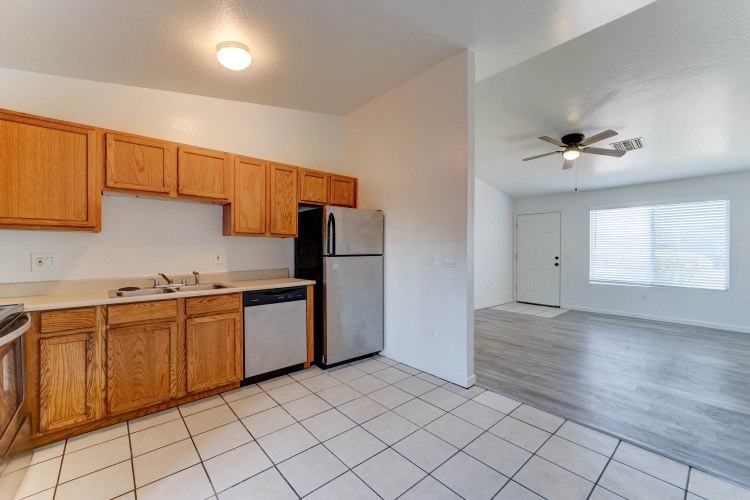 ¡TODOS LOS ELECTRODOMÉSTICOS INCLUIDOS! Uno de los pocos condominios de tres habitaciones disponibles en el área. Recientemente renovado con todos los electrodomésticos de cocina de acero inoxidable, pintura interior nueva, pisos símil madera en las salas de estar, cocina y baño con azulejos, techos abovedados, ventiladores de techo y persianas pequeñas, puertas francesas, lavandería adjunta con conexiones para lavadora y secadora, nuevos termotanque, patio techado. Cerca de colegios, parque comunitario, línea de autobús, zona comercial y de ocio.